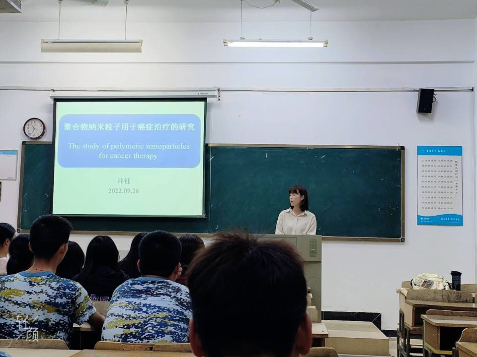 本网讯 9月26日晚,化学与化学工程学院韩钰博士在锦绣校区博约楼107教室举行了题为“聚合物纳米粒子用于癌症治疗的研究”行知讲座,化学、化工、制药、药剂等专业学生聆听了此次讲座。