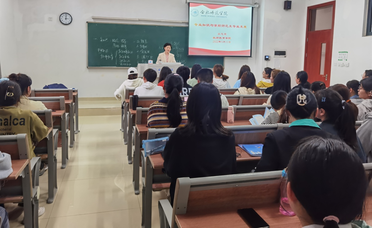 本网讯 5月11日下午,教师教育学院讲师吴忠霞在滨湖校区博学楼A103教室举行了主题为“专业知识与学前师范生专业发展”的学术报告,教师教育学院2020级、2021级学前教育专业全体学生聆听了报告。