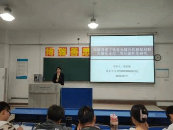 本网讯  5月11日晚,化学与化学工程学院在锦绣校区逸夫楼202教室举行了一场“行知讲堂”学术报告。本场报告由化学与化学工程学院道逍遥老师主讲,题目为“双碳背景下铁基金属有机框架材料光催化还原二氧化碳性能研究”,化学、化工、制药、药剂等专业学生聆听了学术报告。