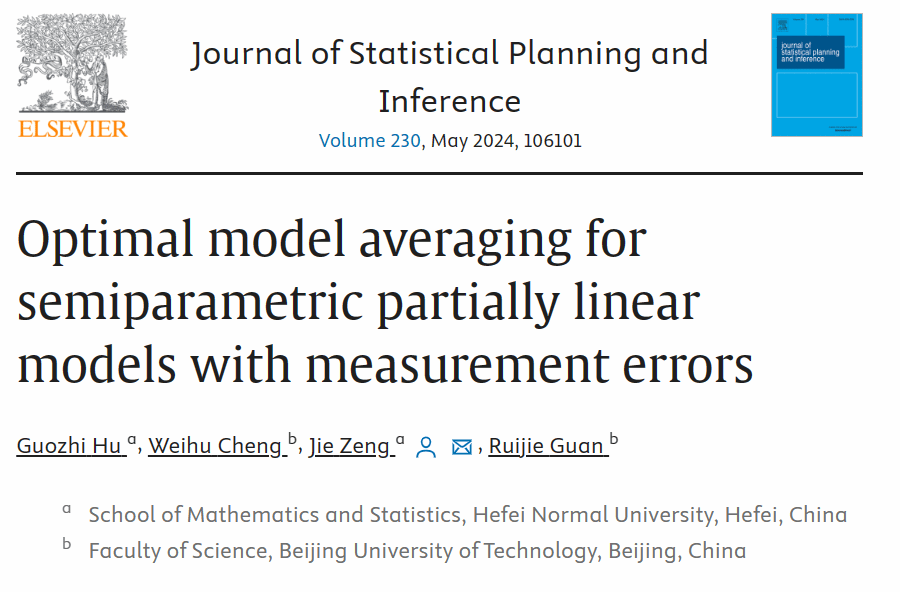 近期,数学与统计学院“基础数学”省级重点学科应用统计与分析团队胡国治博士、曾婕博士在最优模型平均领域取得进展,相关成果Optimal model averaging for semiparametric partially linear models with measurement errors在统计学主流期刊《Journal of Statistical Planning and Inference》上公开发表。