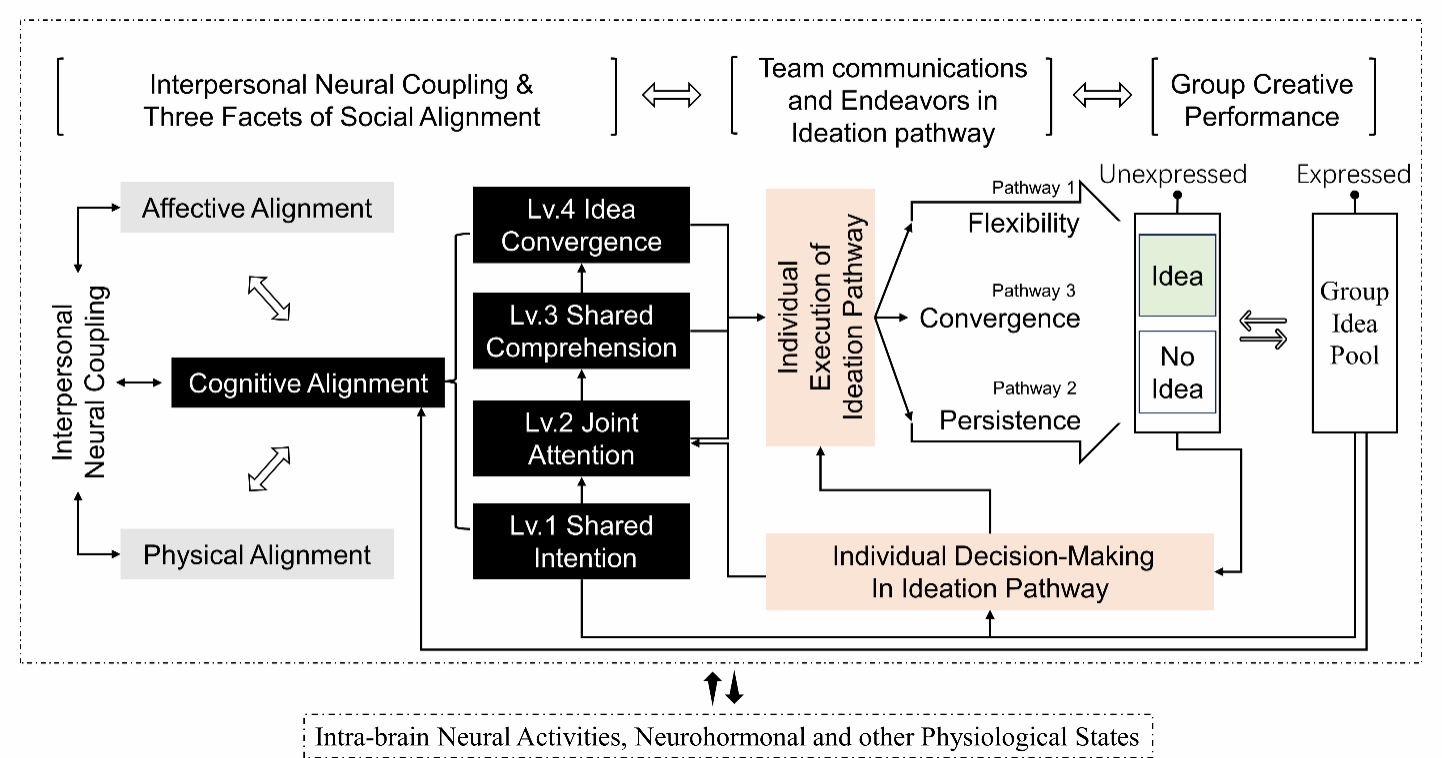 Lu, K., & Hao, N.* (2024). The interpersonal neural coupling in group creative ideation. Psychological Review. online published. https://doi.org/10.1037/rev0000524