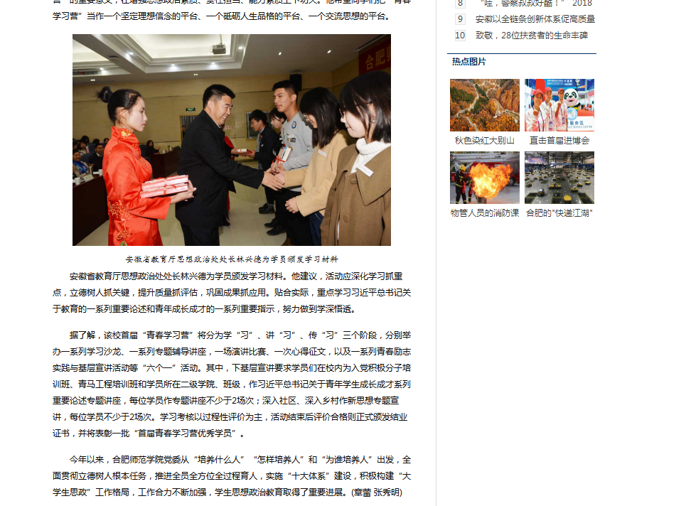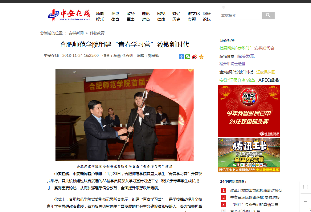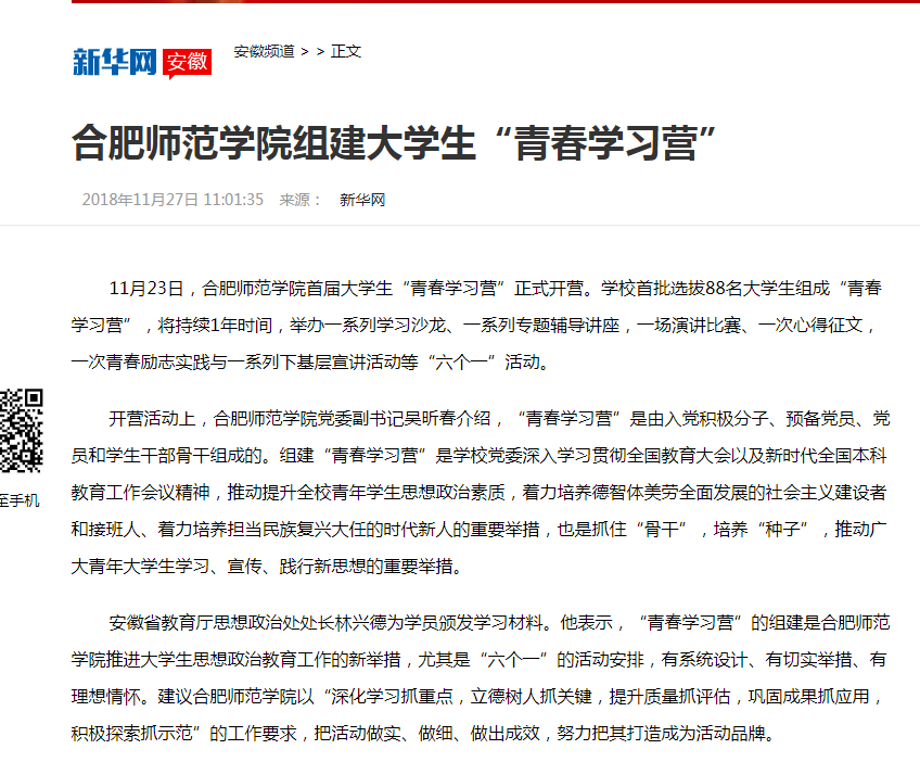 新华网安徽频道、中安在线等报道我院组建“青春学习营”活动